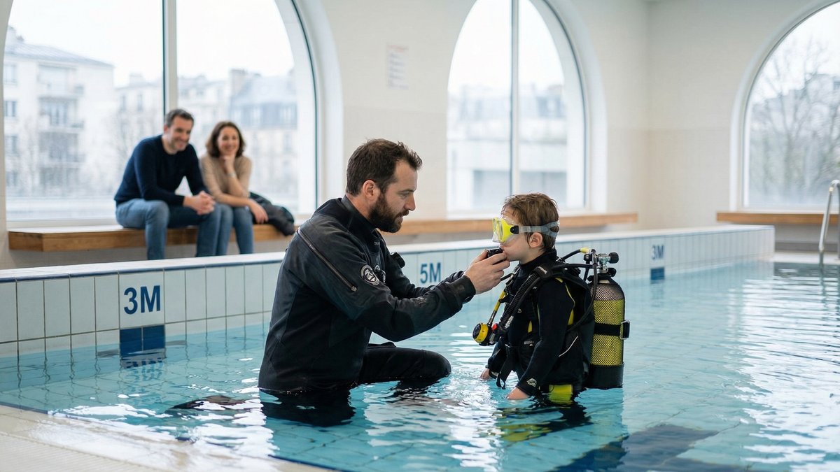 À Paris, la plongée enfant se fait dans des fosses conçues pour cela, sur des profondeurs adaptées, en suivant des standards pédagogiques précis, comme ceux des brevets enfants PADI ou des cursus FFESSM pour les plus jeunes. Tout le reste relève du cirque aquatique, pas de la formation.